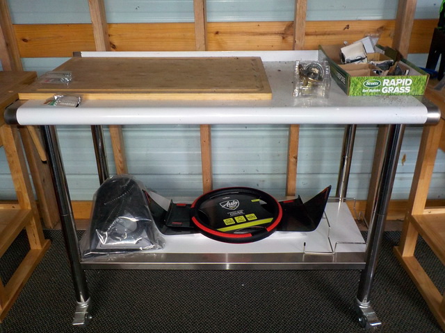 older go-cart, modern work benches, 3’ stainless steel work tables on wheels,