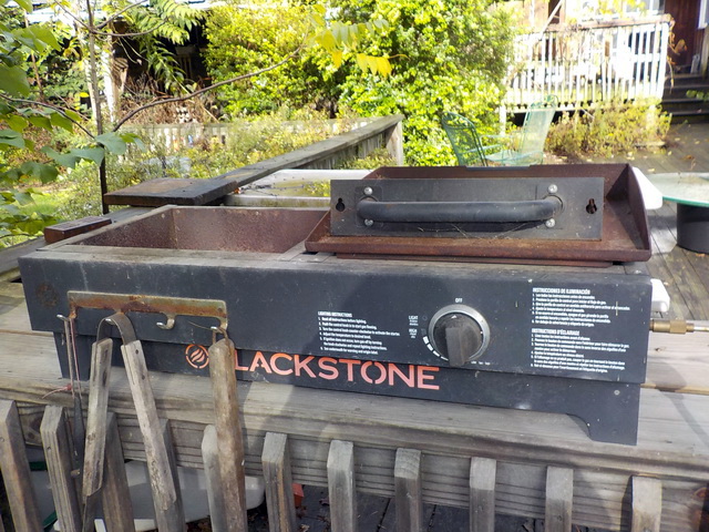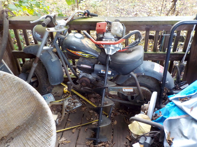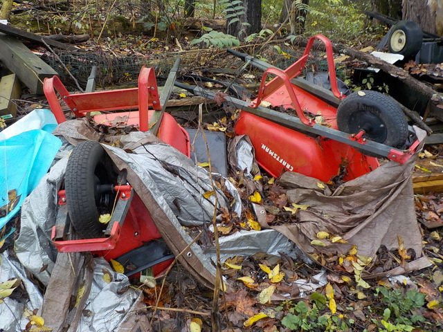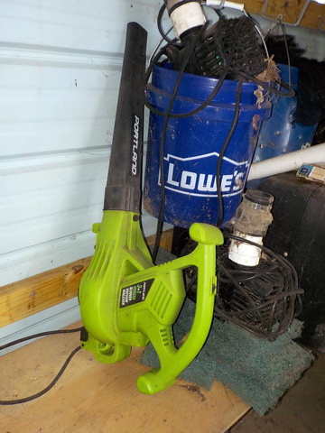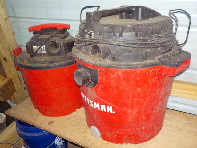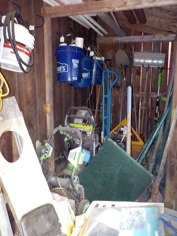 Machinist vise, Husky 1.5 gal. air compressor, push mowers, propane Solo stove,