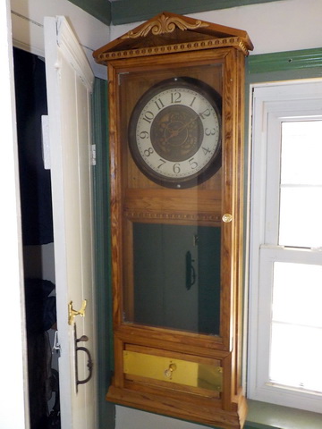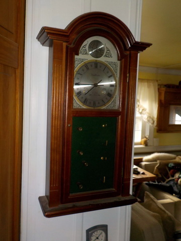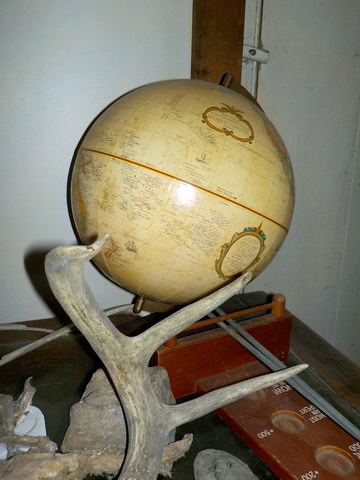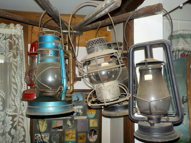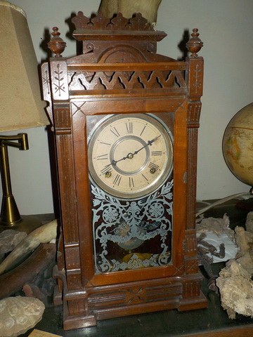 walnut shelf clock, old world globe, railroad lantern & barn lanterns, large