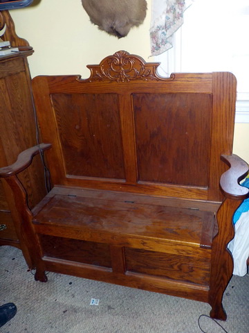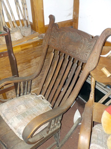 brass hotel hall tree, old wood box, Penn State rocking chair, Philips 2022 lrg.