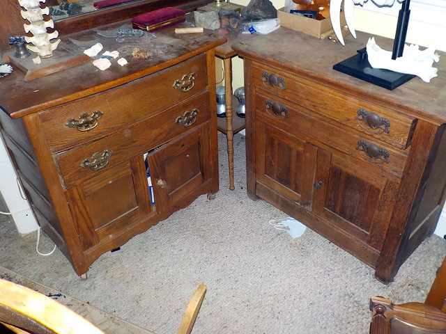 5 & 6 door chests, antique oak washstands, antique oak flower stands, antique