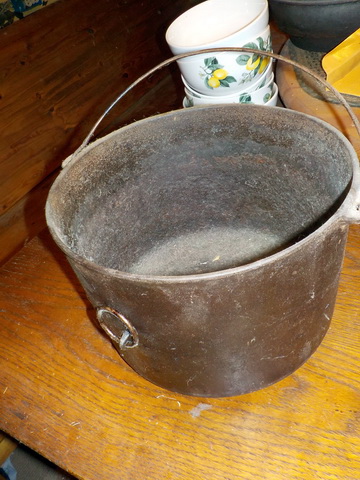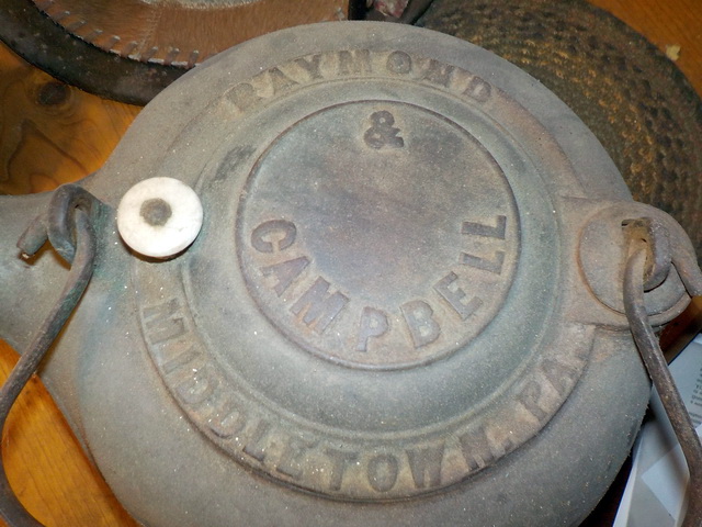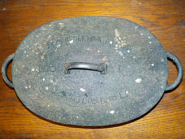 iron roaster w/ lid, Marietta, PA. 5 qt. iron kettle, Dickson, PA. early foundry