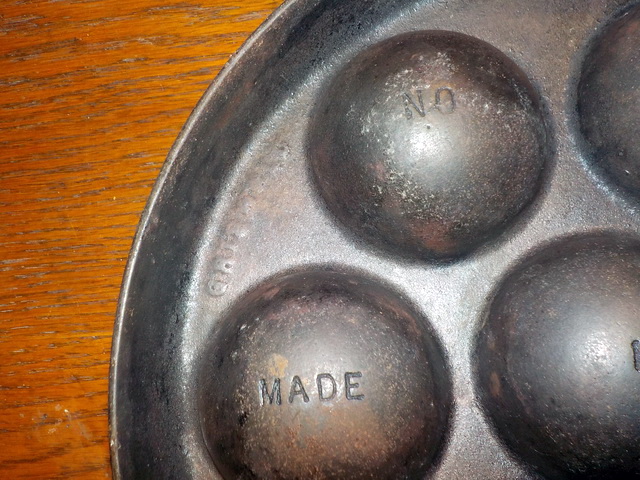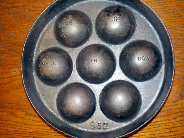 #32 poached egg skillet, Griswold #7 dutch oven w/ lid, odorless pat. 1893 #8