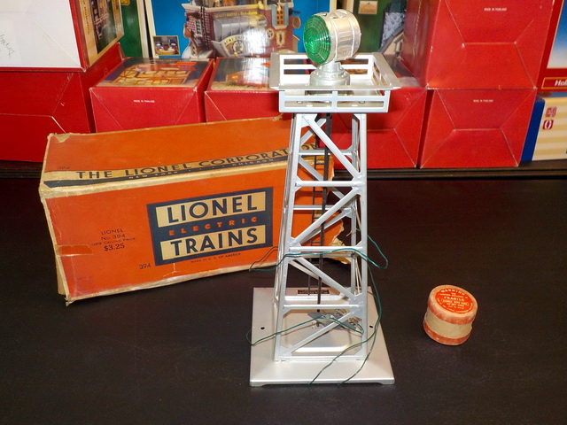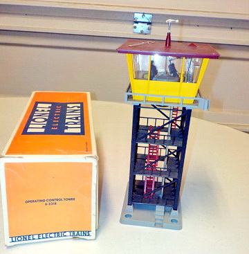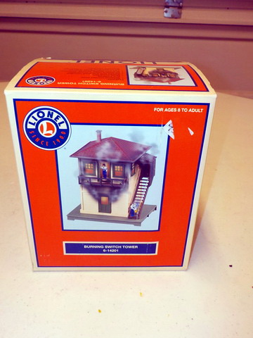 orig. box, Lionel operating control tower in orig. box, Lionel burning switch