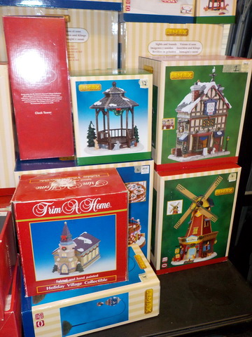 Lionelville & Plasticville accessories in boxes, many NIB Lemax lighted