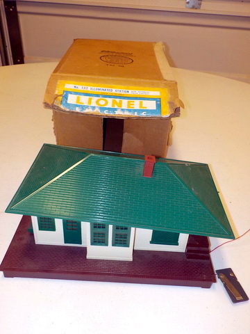 set in orig. box, Lionel #132 Illuminated Station in orig. box, Lionel North