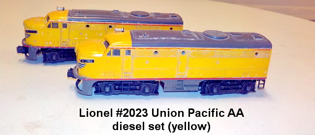 AA diesel set, Lionel #2023 Union Pacific AA diesel set (yellow), Lionel #204