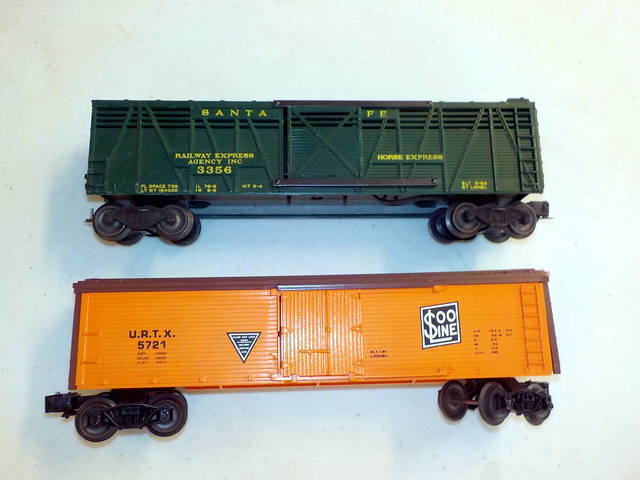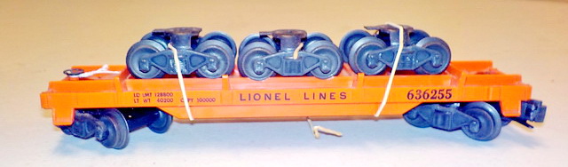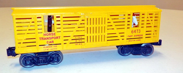 Lionel #6473 horse transport car, Lionel #636255 flatcar w/ trucks, Lionel #6528