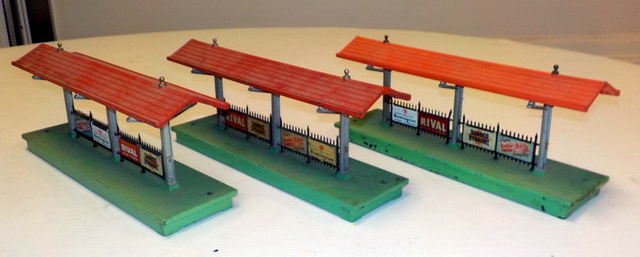 postwar automatic log loaders, Lionel track signal, (3) Lionel #156 station