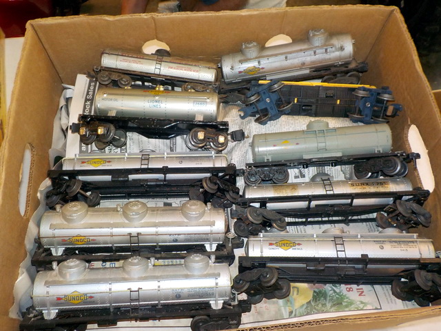 set, Lionel Sunoco tank cars, Lionel #3927 tractor cleaning car in orig. box,