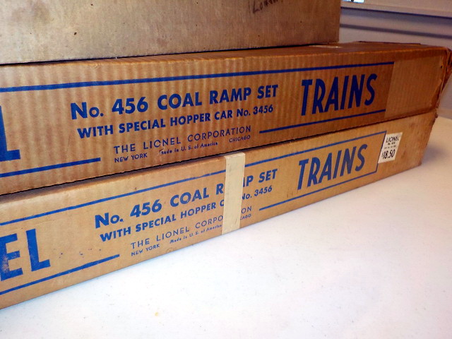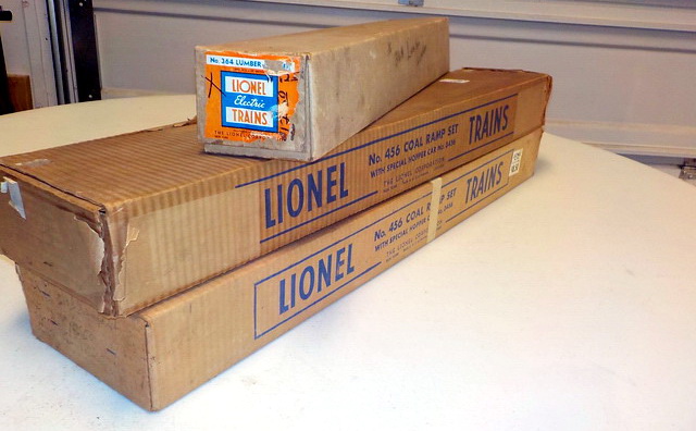 searchlight car in orig. box, (2) Lionel #456 coal ramp sets w/ #3456 hopper car