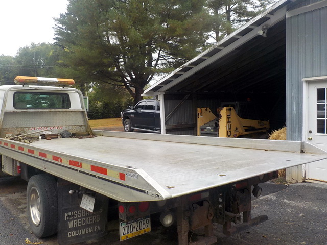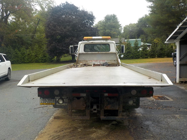 Truck w/ aluminum Jerr-Dan Roll Back Bed, 1991 Ford F700 single axle dual wheel