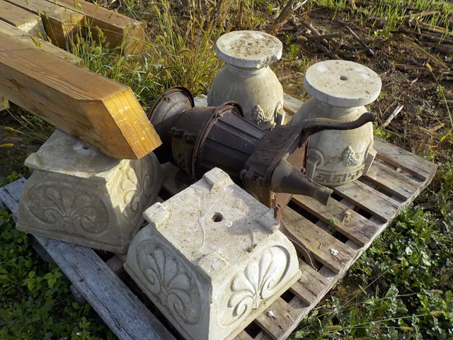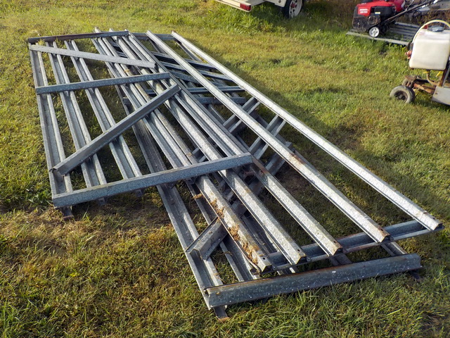 skidloader, 20’ aluminum walk, concrete flower planters, galvanized farm gates,