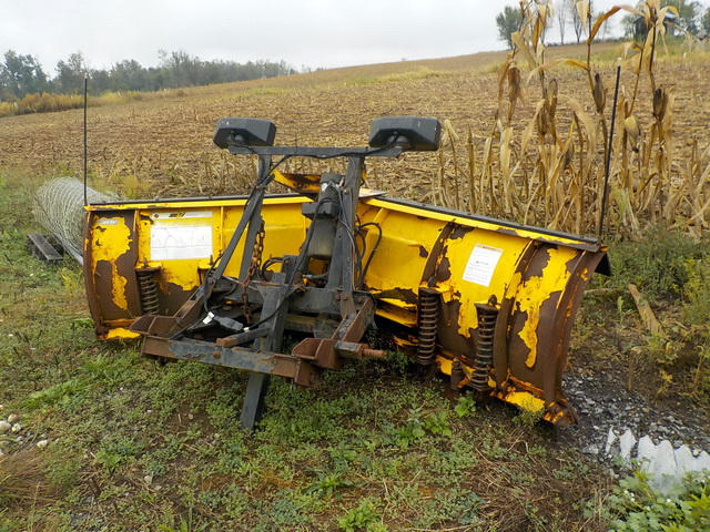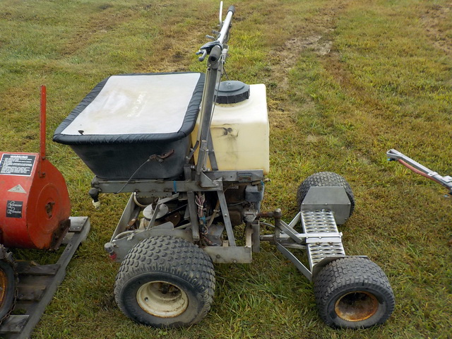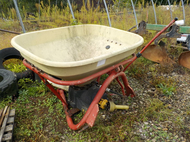 EZ-V snow plow, 3 pt. hitch roto-tiller, 3 pt. hitch fertilizer spreader, John