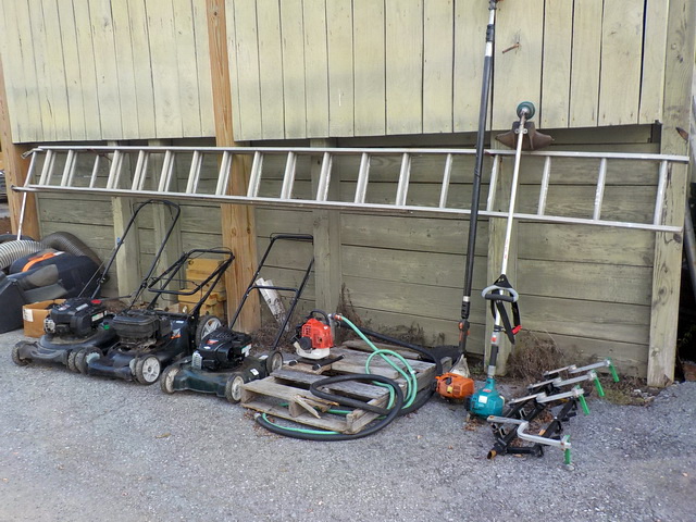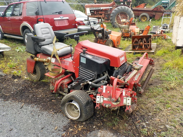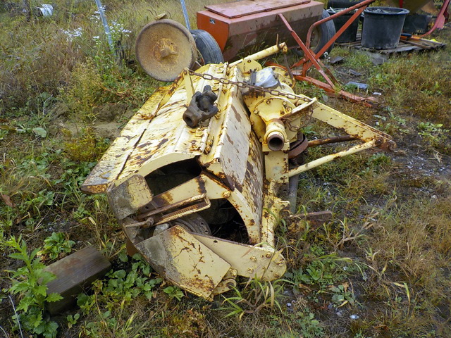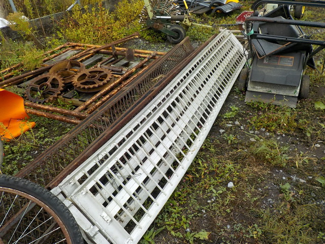 elevator, Toro 216 reel mower, Early model Fox snowmobile, Pull behind lawn