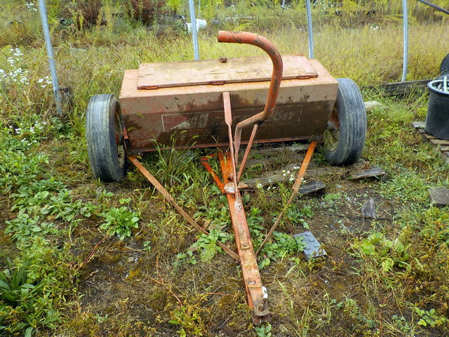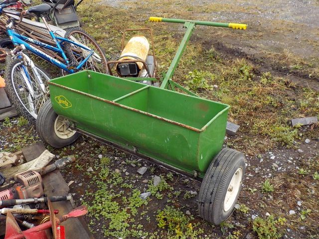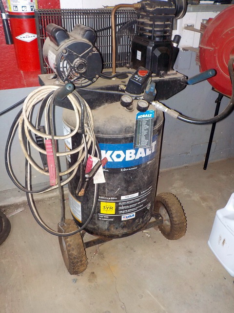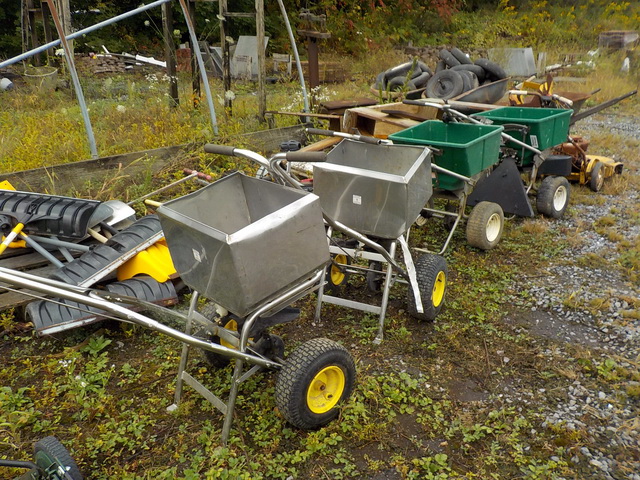 set on cart, Kobalt portable air compressor, snowblowers, push spreaders, drop