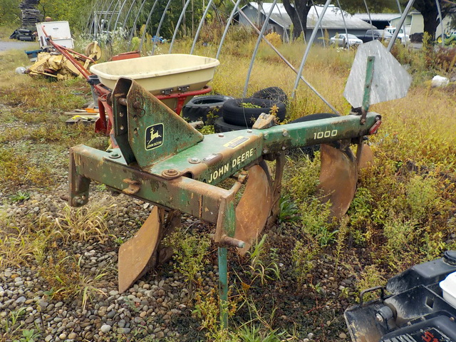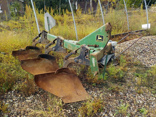 Deere 1000 3 pt. hitch 3 bottom plow, John Deere 115 transport disk, Brillion