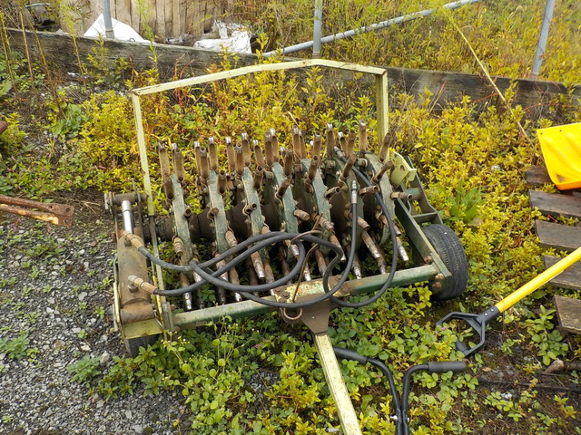 aerator, pallet forks for skidloader, 30 ft. transport auger, Royer topsoil