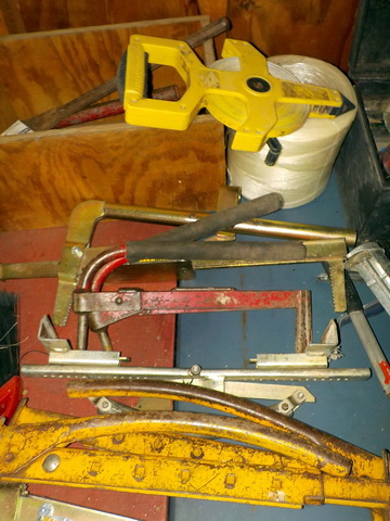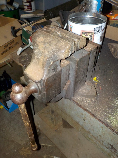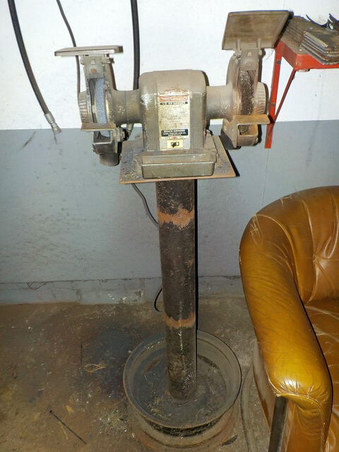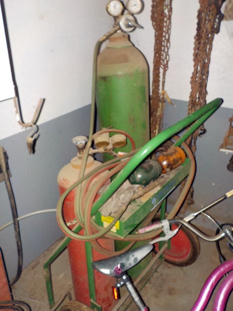 drivers, iron bench vise, bench grinder on stand, Lincoln 225 welder, oxy./act.