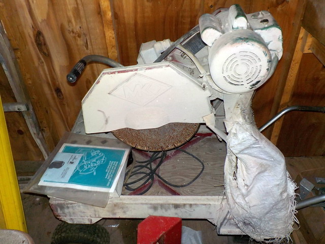 saw, David White transit w/ tri-pod & stick, floor model Block Shear, tile saw