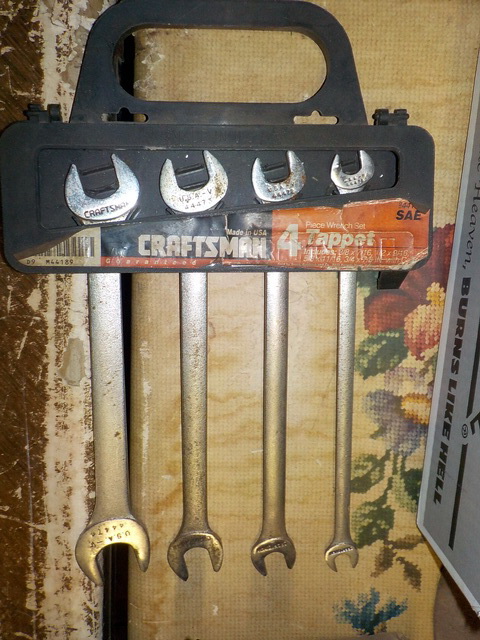 pvc pipe, black drain pipe, Craftsman wrenches, Craftsman Tools, sockets, nut