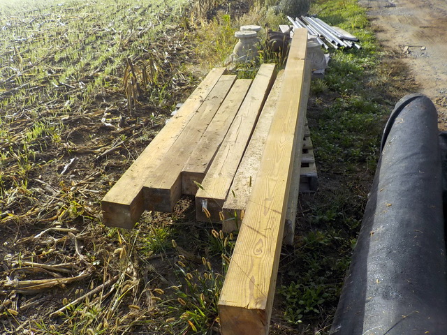 shredder, soil preparator, 500 gal. water tank, 18 roof trusses, Tracks for