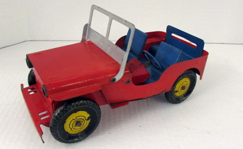 Jeep, Japan Friction Trucks, Model Toys Adams Grader, Model Toys Cement Mixer,