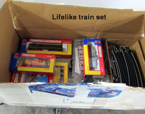 Garage, Marx All State HO Hudson Set, Tyco Dixie Belle Pass. Set, Marx Cannon,