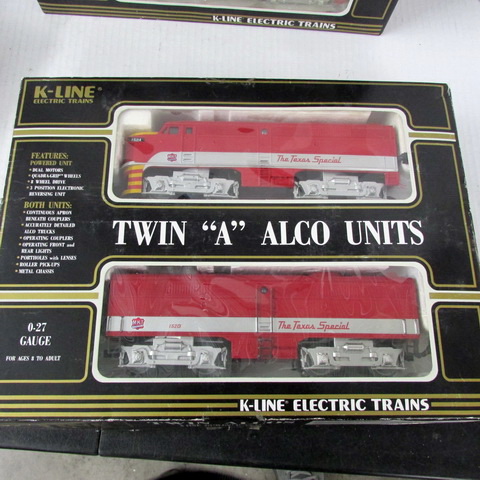Texas Special Twin Alcos, K-Line Water Flat Car, HO Dewitt Clinton Set, HO John