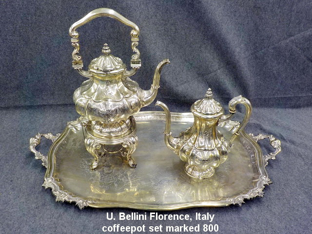 Poole sterling silver pitcher, U. Bellini Florence, Italy coffeepot set marked