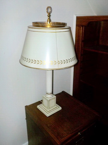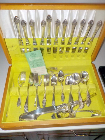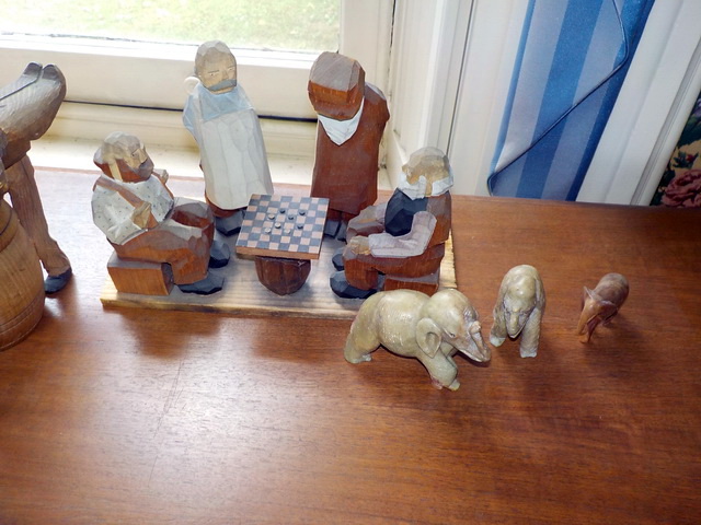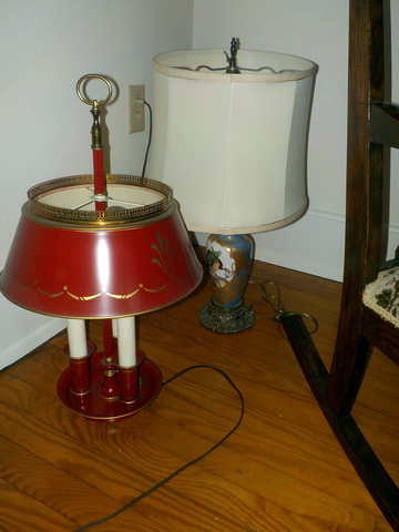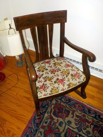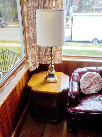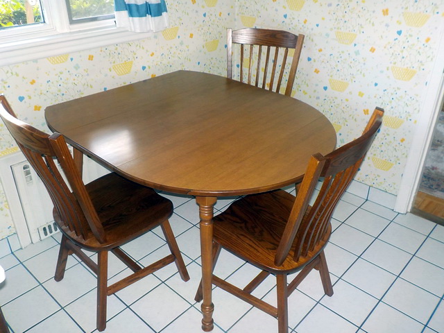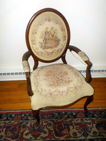 beds, needlepoint armchair, needlepoint rocker, maple dinette table w/ oak