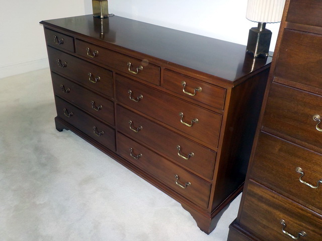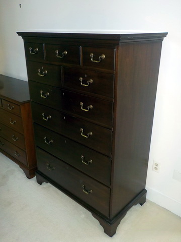 leather armchairs, cherry 9-drawer high chest of drawers, cherry dresser,