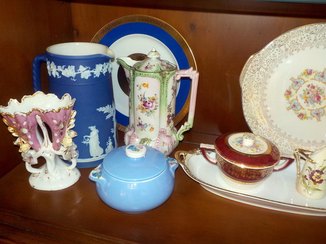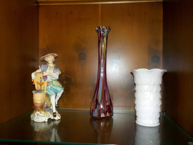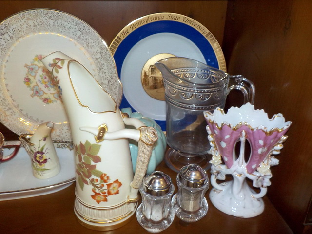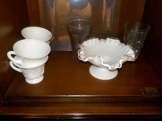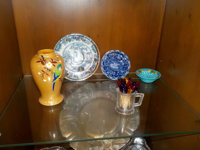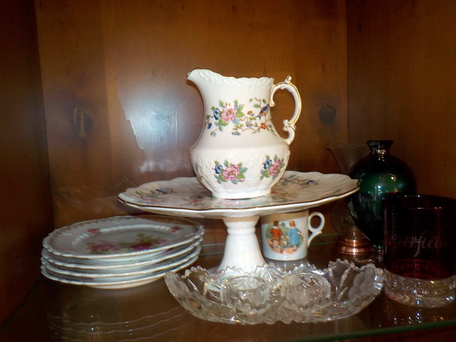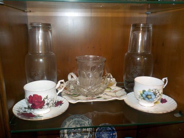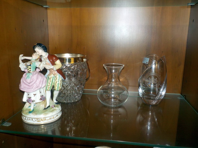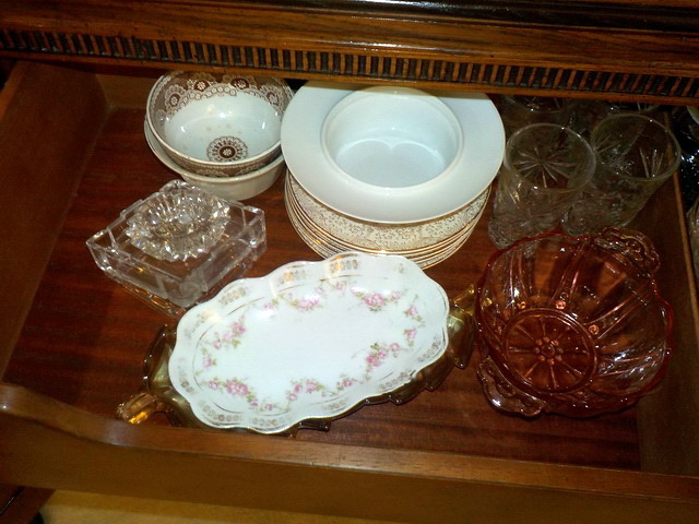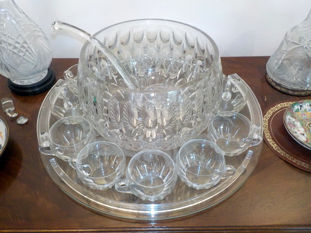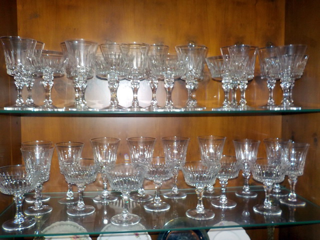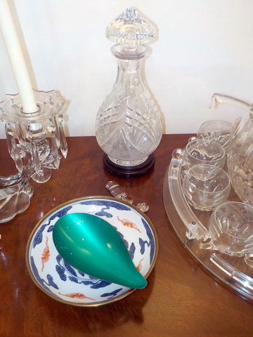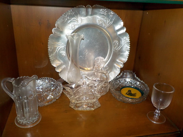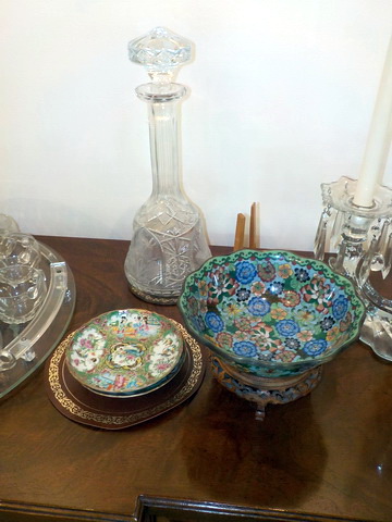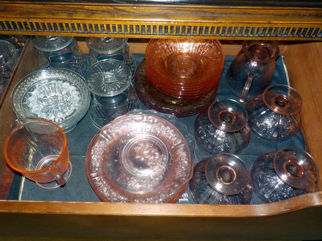 bowl, crystal liquor decanters, pink depression pcs…..No