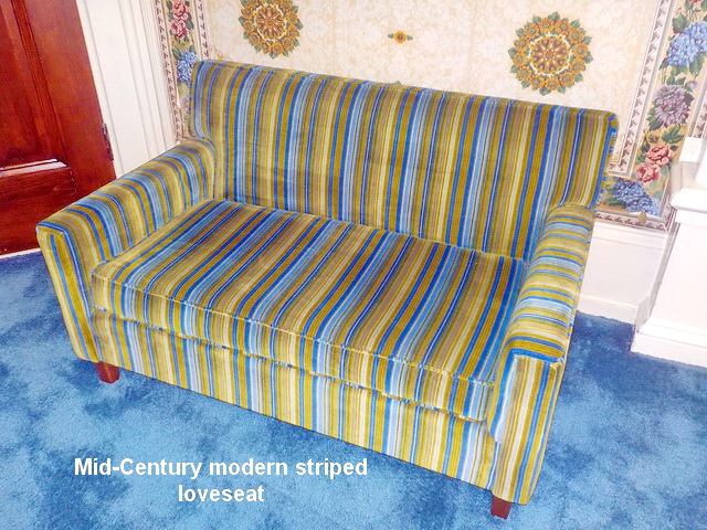 leather office armchairs, Mid-Century modern striped loveseat, fancy high