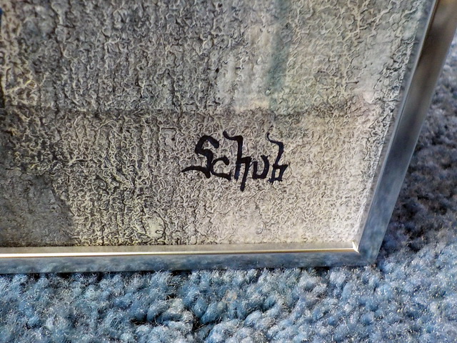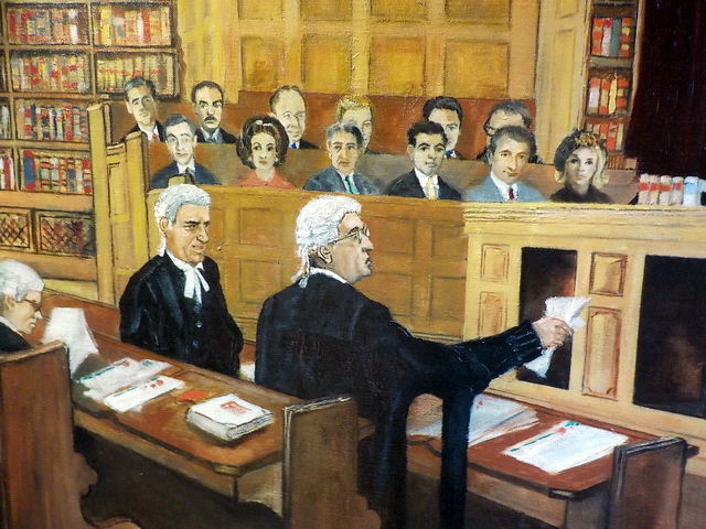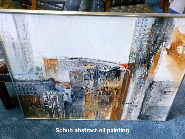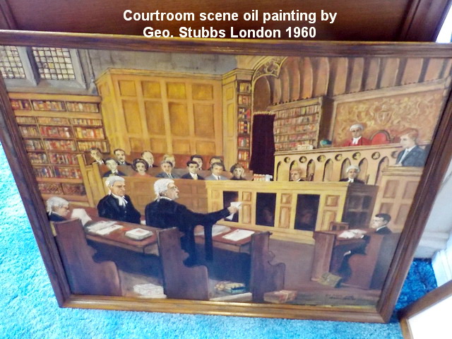 800, abstract oil painting by Schub, Courtroom scene oil painting by Geo. Stubbs