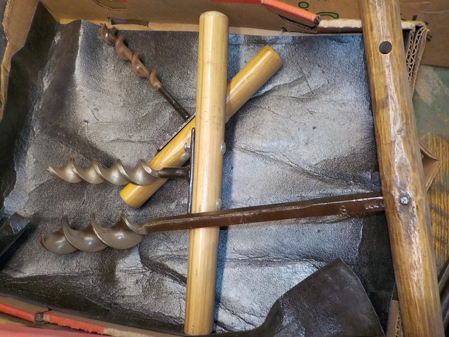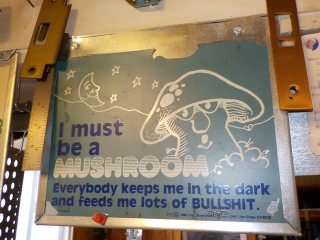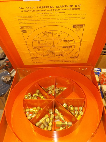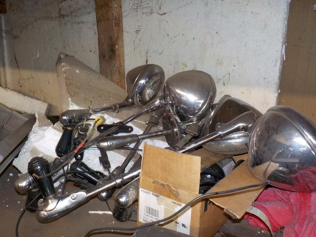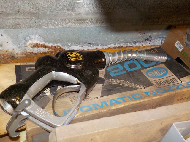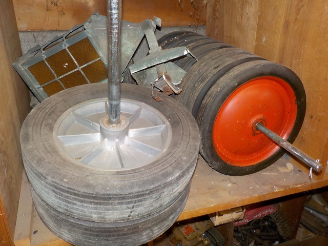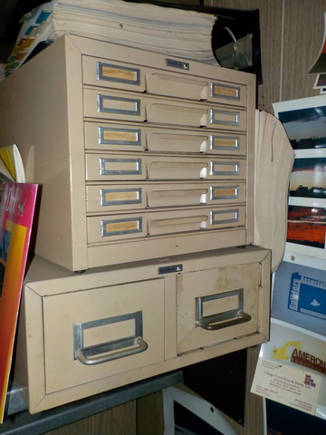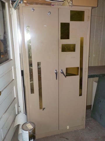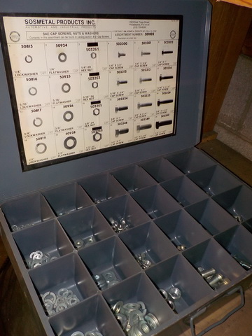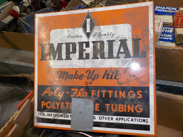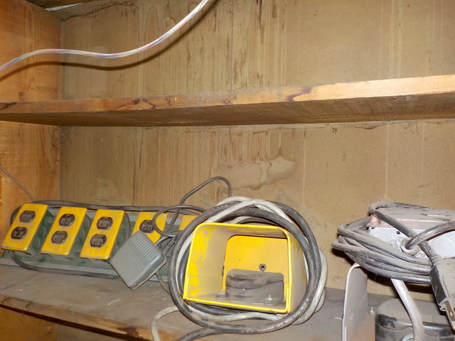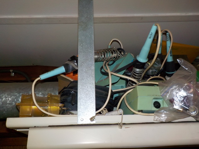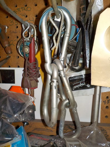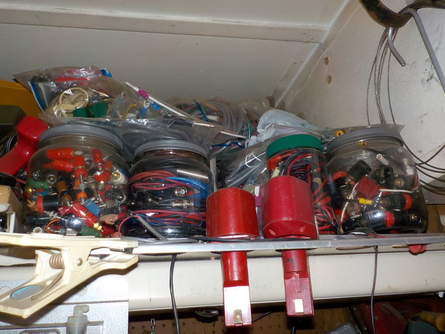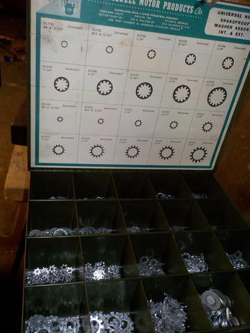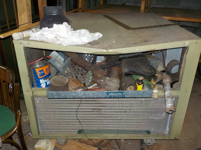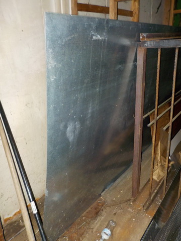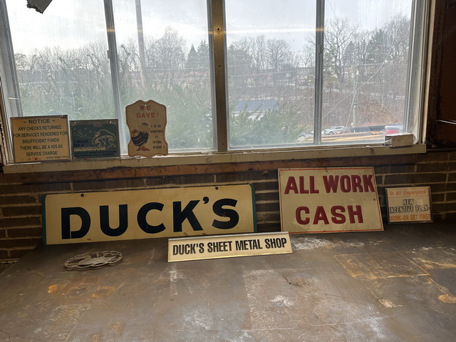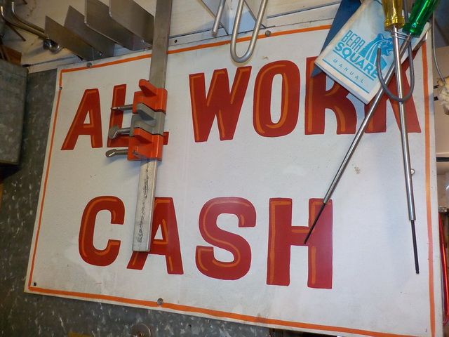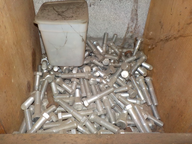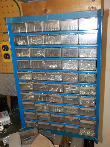 of sheet metal, copper rain spout, pipe glue clamps, bolt bins, sheet metal shop