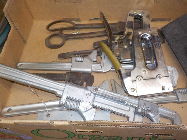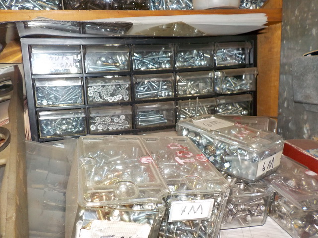 Various hand tools, nuts & bolt bins, office chairs, shop stools, various sizes