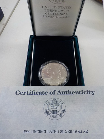dollars, 1974 Eisenhower uncir. silver dollar, (4) 2002 US Mint silver proof
