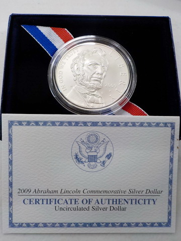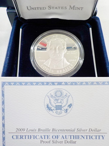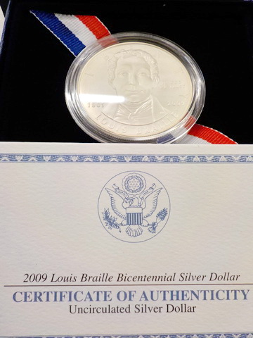 dollars, 2009 Abraham Lincoln uncir. Silver dollar, (2) Louis Braille bi-cent