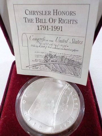 Franklin Mint w/ silver, (2) 1991 Chrysler Corp. .999 fine silver Bill of Rights