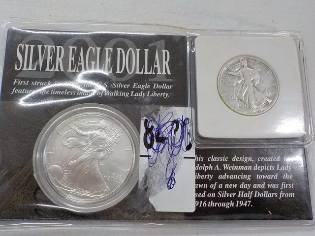 silver dollar w/ 1940 Walking Lib. Silver half, 100 Years US silver dollars w/