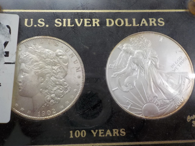 1902O Morgan & 2002 American Eagle silver dollar, The Millennium US Century