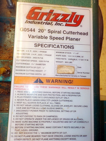 jointer, Grizzly G0544 20” spiral cut variable speed planer, Grizzly Extreme