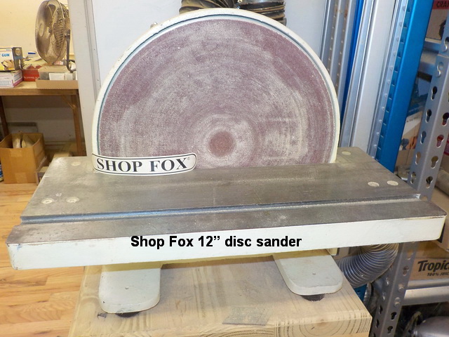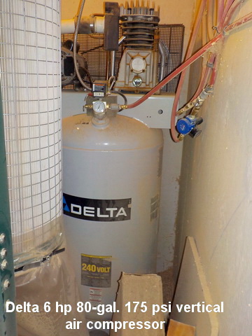 downdraft sanding table, Shop Fox 12” disc sander, Delta 6 hp 80-gal. 175 psi