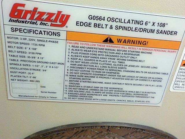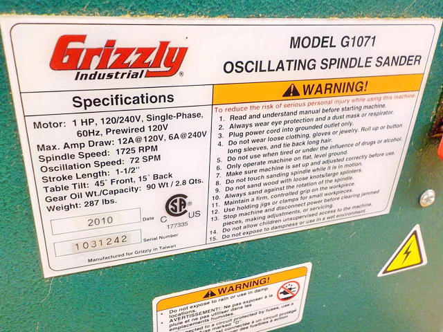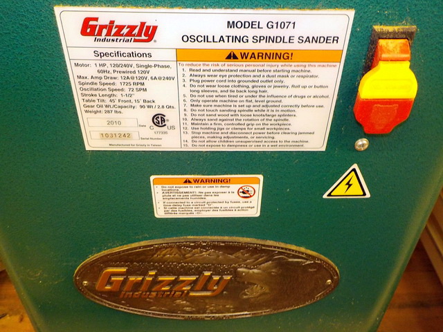 sander, Grizzly G0540 single spindle boring machine, Grizzly G1071 oscillating