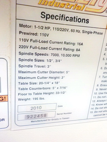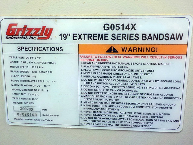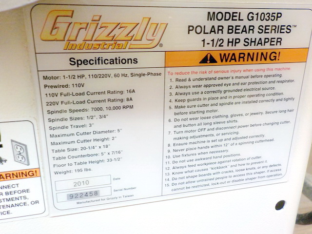 Series G0514X 19” fl. mod. bandsaw, Grizzly G1035P fl. mod. shaper, Grizzly