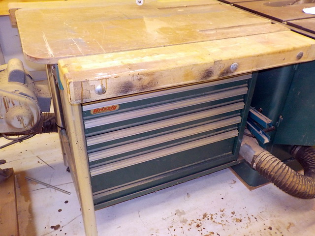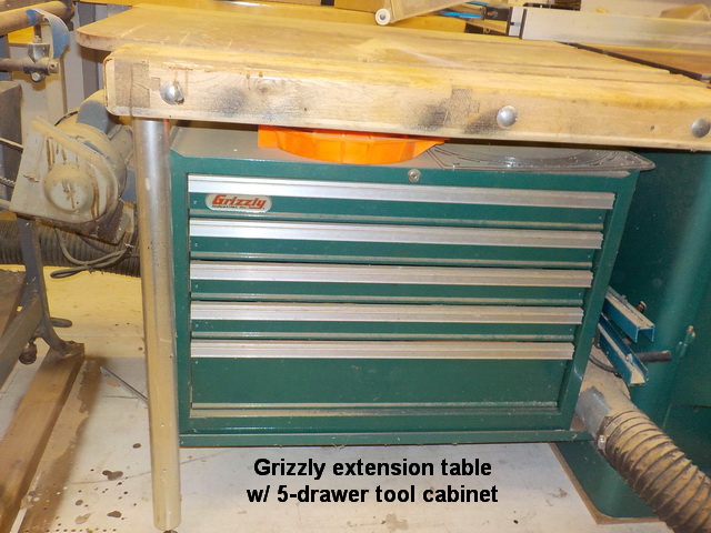 Grizzly extension table w/ 5-drawer tool cabinet, Grizzly G1163 1 hp dust