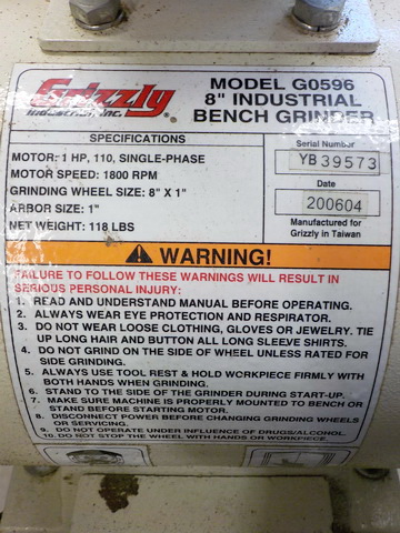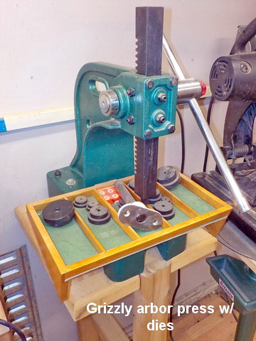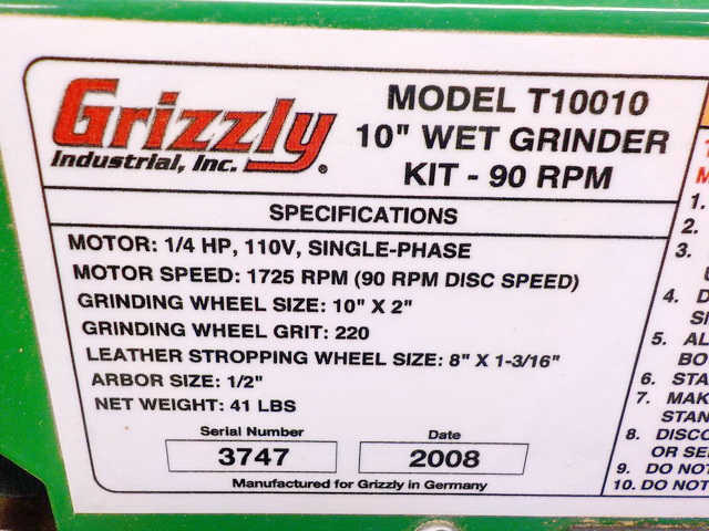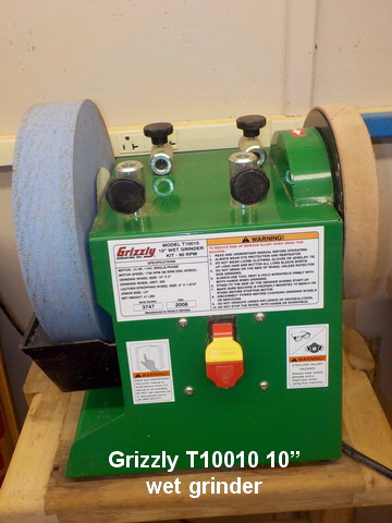 grinder on stand, Grizzly arbor press w/ dies, Grizzly T10010 10” wet grinder,