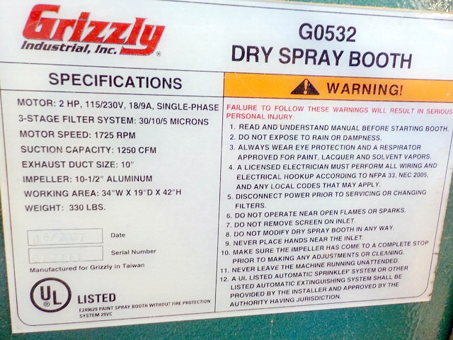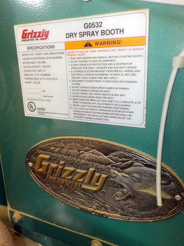 Grizzly G0532 dry spray booth, Grizzly power feeder, Grizzly T26748 pneumatic