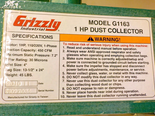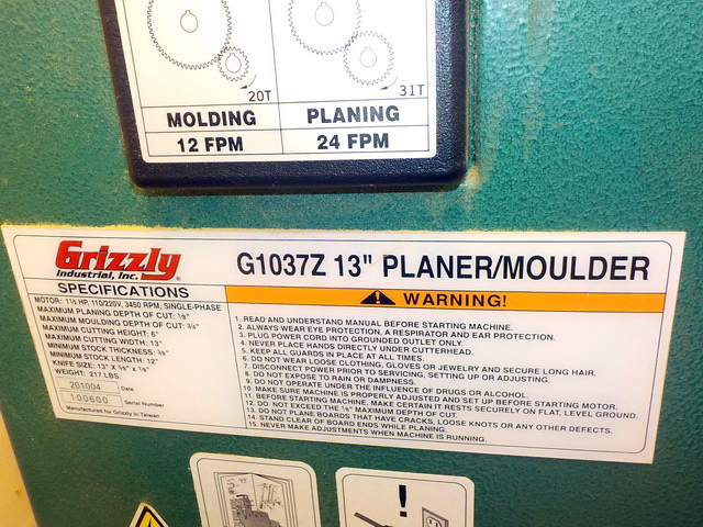 G10372 13” planer/moulder, Grizzly G0441 3 hp commercial dust collector w/